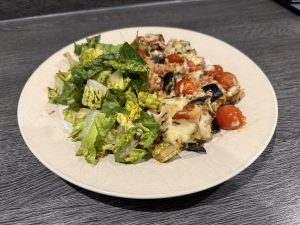 Vegetarisches Moussaka mit grünem Salat